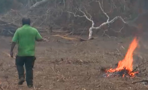 Las imágenes aéreas muestran los montones de los troncos derribados los que se pretendía prender fuego.